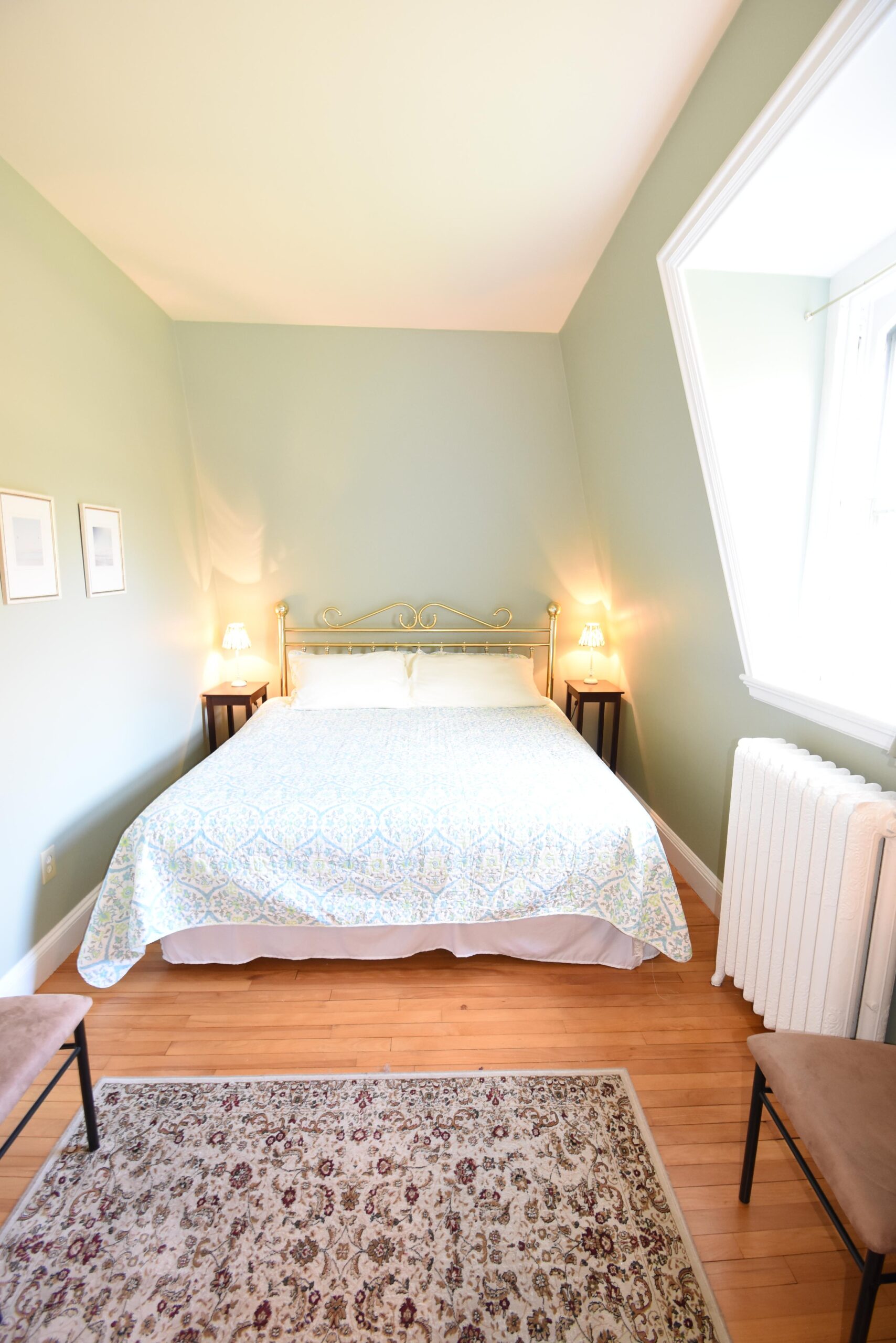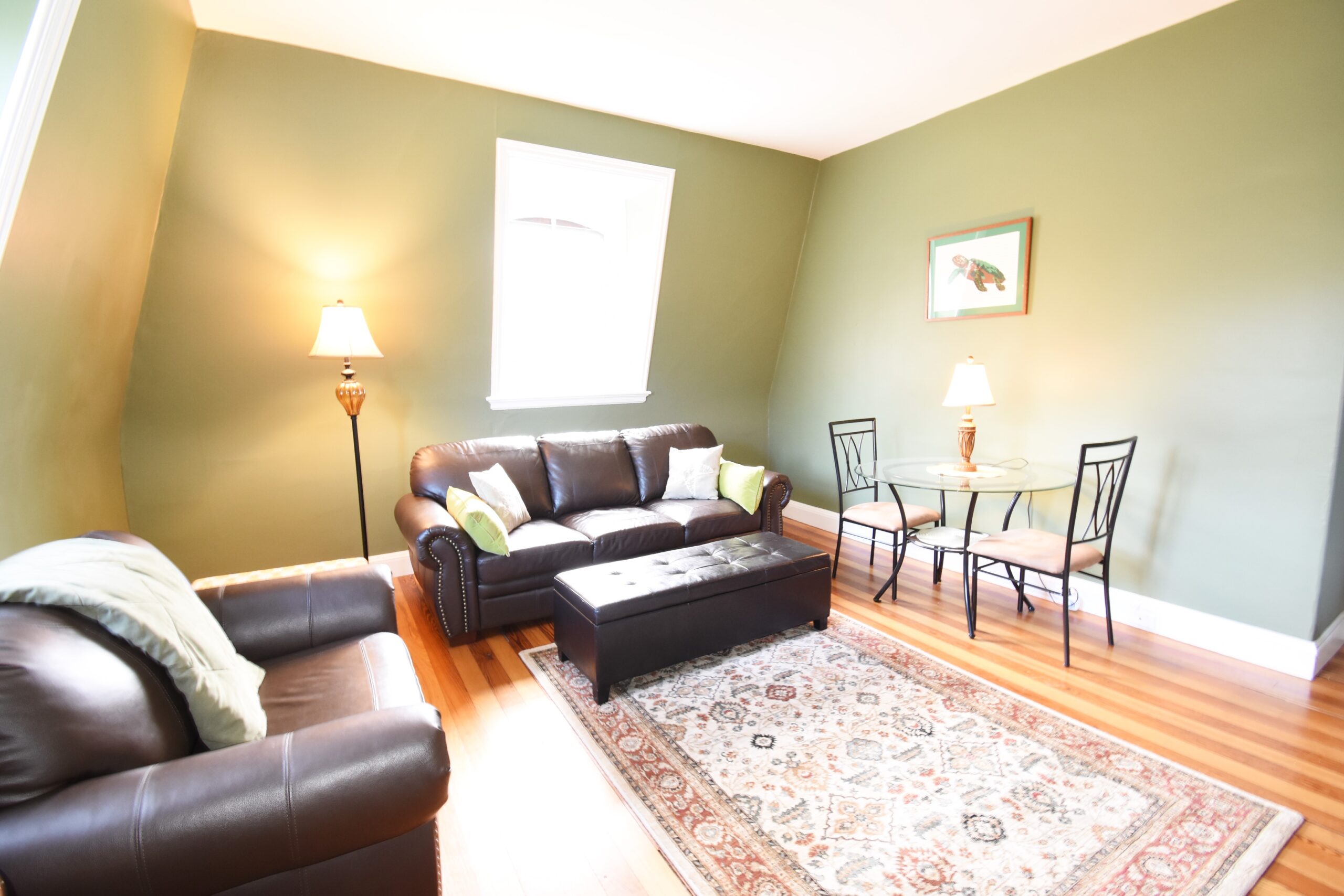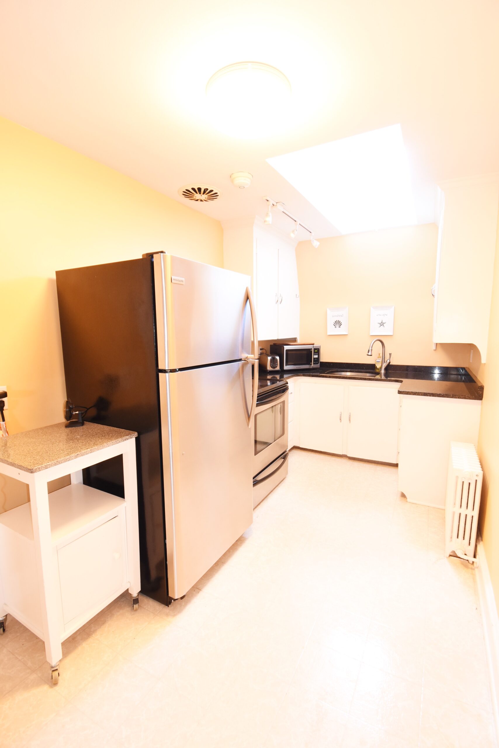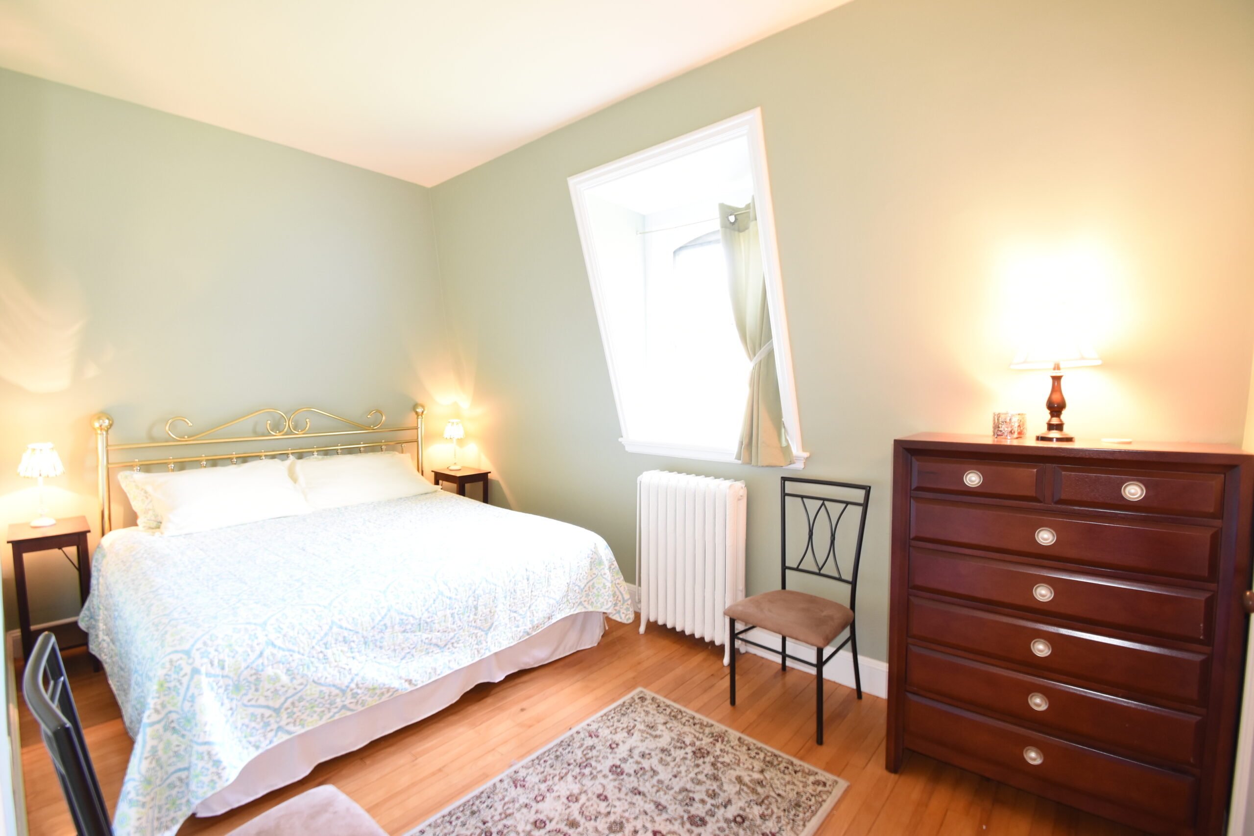 Beautifully furnished downtown Condo in the heart of Newport. Located on the third floor with high vaulted ceilings and skylights throughout sits this perfectly furnished one bedroom condo. Hardwoods floor and an ornamental fireplace bring in the Newport charm to this bright and airy home. The master bedroom has a nice sized closet as well as a king sized bed, side tables and a dresser. The leather couch and love seat add comfort to the living room along with a nice sitting table perfect use for a computer desk or a movie night glass of wine and cheese! Updated granite counter tops in the kitchen with stainless appliances and a skylight over the sink adding sunlight throughout the day! Enjoy the spacious yard and gorgeous view from the side lawn. Parking on site and only a few short steps to downtown Newport or Easton's Beach. Laundry in the basement and all utilities included in the rental price! Sorry no pets.