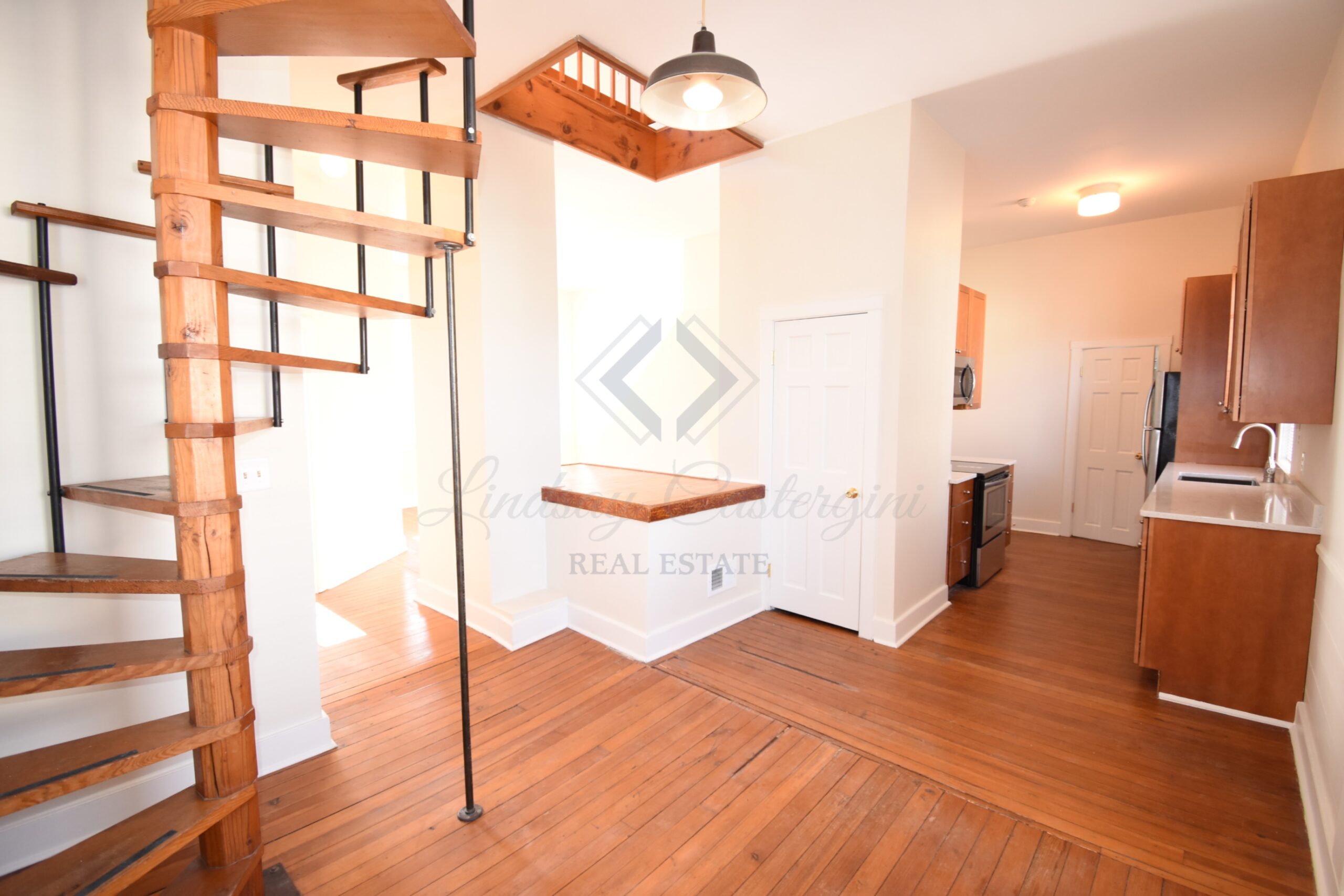 Lovely recently renovated second floor apartment located in downtown Newport. Bright sunlight fills this wonderful apartment with high ceilings, hardwood floors, a nautical feel to the spiral staircase winding to your master bedroom and fenced a fenced in yard. Newly updated kitchen counter, cabinets and appliances. Nicely tiled bath and laundry onsite. Sorry no dogs, possibly a well trained cat.