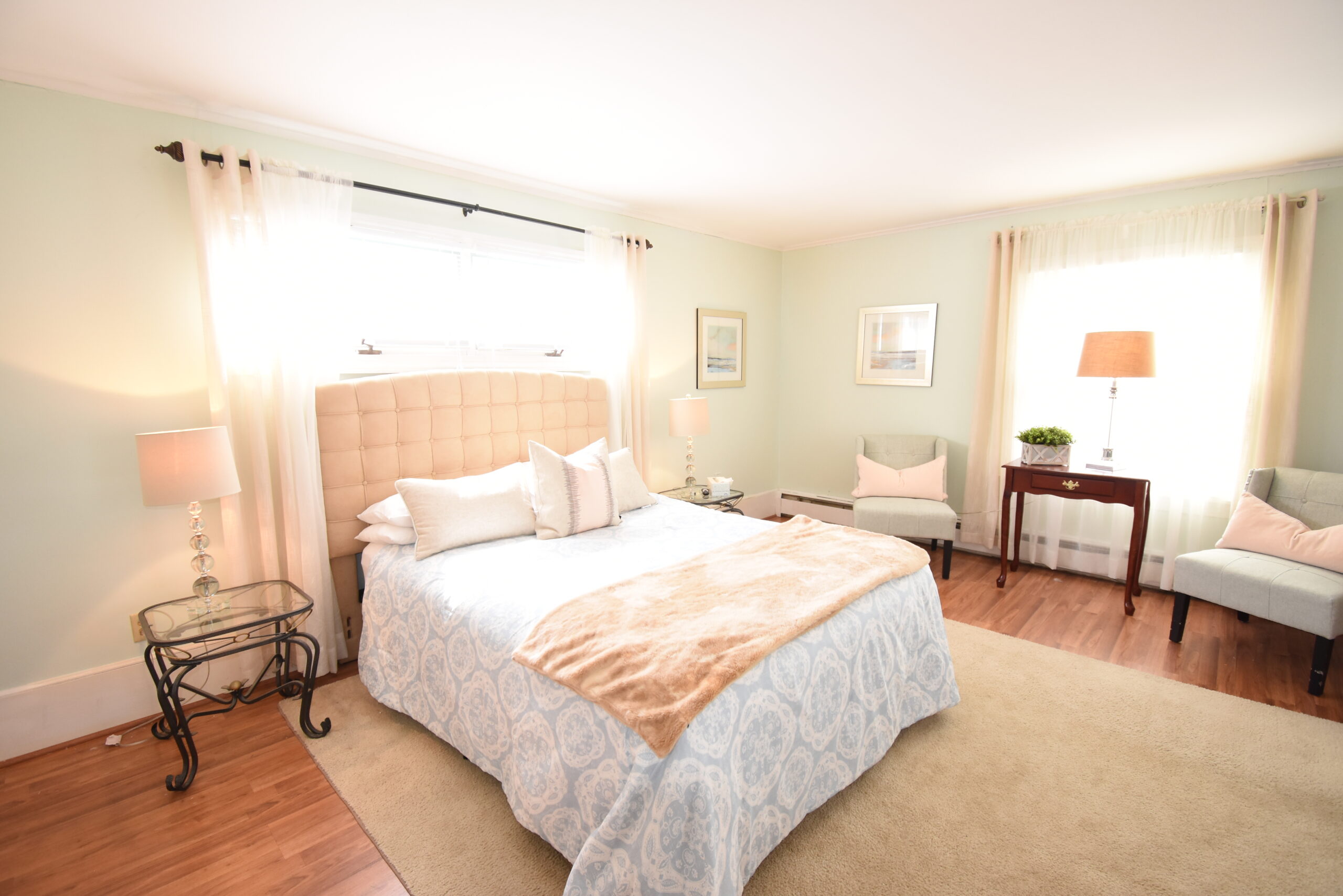 You will fall in love with this gorgeous home. Offered either furnished or unfurnished with perfection in every charming detail. Updated kitchen with stainless appliances, granite counters and open faced cabinets. First floor updated bath boasting a soaking tub, tiled flooring and washer and dryer. Formal dining room, large living room with an open fireplace that leads through to your family room with glass french doors and hardwoods throughout. Three bedrooms on your second floor with an additional spacious full bath and ample closet storage. Parking for two cars. A definite must see! Available furnished or unfurnished. Inquire about furnished pricing.