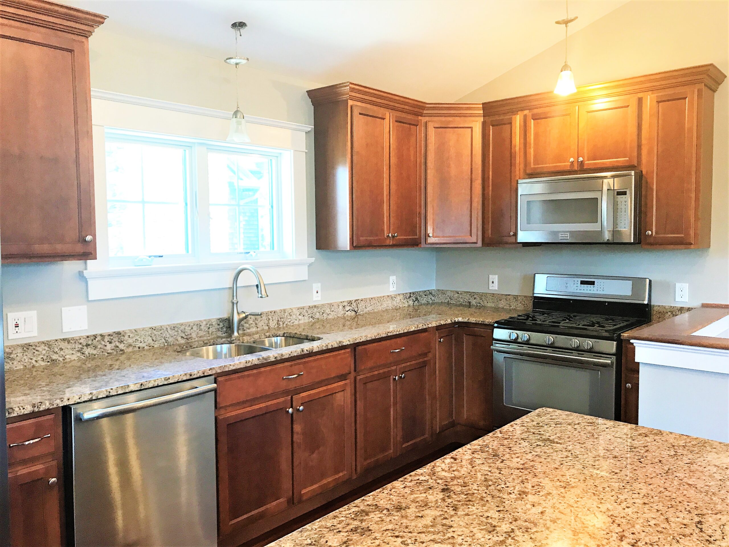 You will fall in love with this beautiful second floor updated condo. Hardwoods with new carpet in the bedrooms. Full open kitchen and living room with a dining area. Separate office with glass french doors and a wonderful kitchen island. Granite counters, stainless appliances and gas stove and heating. Good sized bedrooms both with a full bathroom, tiled floors, granite vanities and oversized showers. Full soaking tub in your master bath! Gas heat and central AC. Private entrance, two parking spaces, additional storage shed and also tennis courts and a pool! Your cats are considered, Sorry no dogs. Water and landscaping are included in your rental payment.
